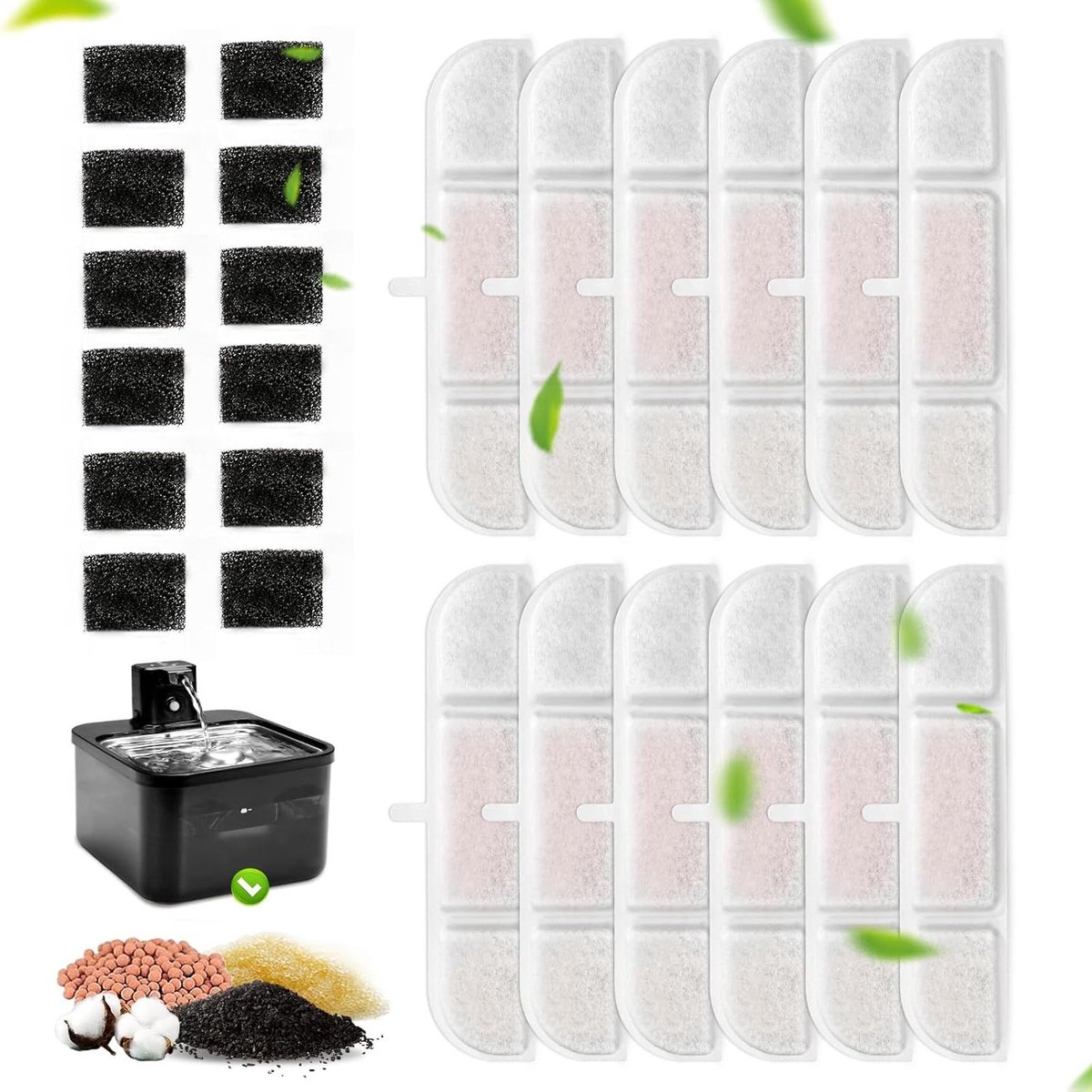 12 stuks Kattenfonteinfilter- filters en sponzen- voor draadloze 25L drinkfontein met lonenwisselhars (DPWFP6)