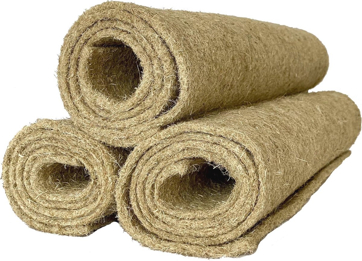 Dit hoogwaardige knaagdiertapijt van 100% hennep (120 x 50 cm 5 mm dik) is perfect als bodembedekking voor jouw knaagdieren. Gemaakt van biologische hennep zonder chemische toevoegingen biedt deze mat een milieuvriendelijke oplossing voor je huisdier. Het henneptapijt is niet alleen zacht en warm maar ook ideaal voor nestbouw en beschermt de poten van je dieren. Het is composteerbaar en voldoet aan de eisen voor biologische teelt. Maak je geen zorgen over ongedierte; de natuurlijke eigenschappen van hennep helpen daarbij. Snijd de mat eenvoudig op maat voor de perfecte pasvorm in de kooi. Ontdek ook onze andere maten en accessoires.