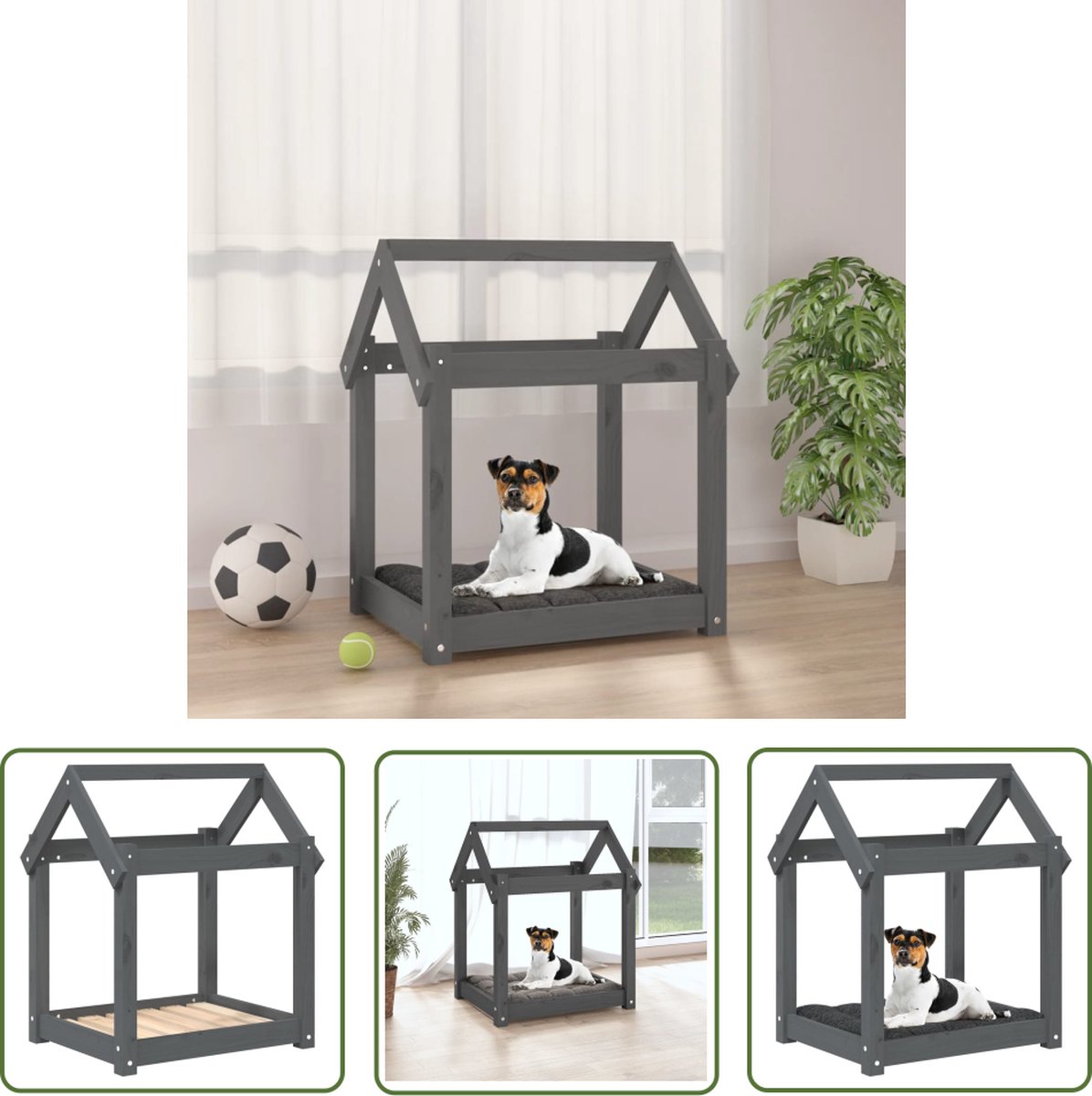 The Living Store Hondenmand 61x50x70 cm massief grenenhout grijs – Hondenmand – Hondenbed – Massief Hout – Grenenhout – Honden Accessoires