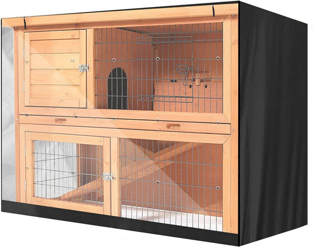 Waterdichte stofhoes voor konijnenhok met dubbellaagse bescherming, geschikt voor krabben, hamsters en huisdieren – 122 x 50 x 105 cm (Zwart)