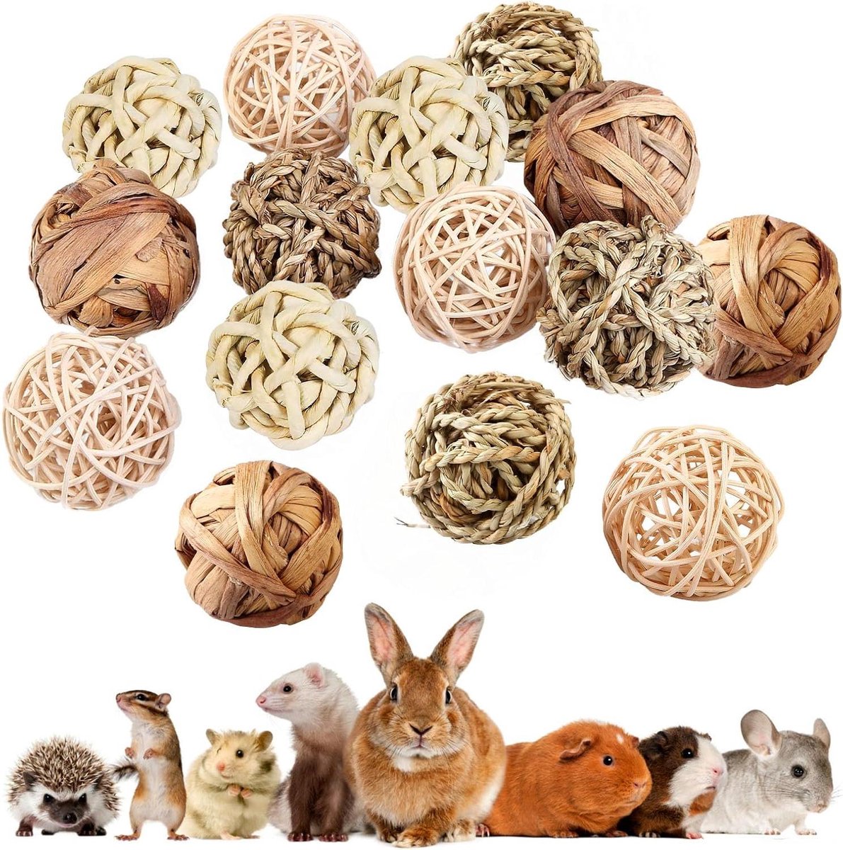 Kauwballen voor kleine dieren – 15 stuks grasspeelgoed